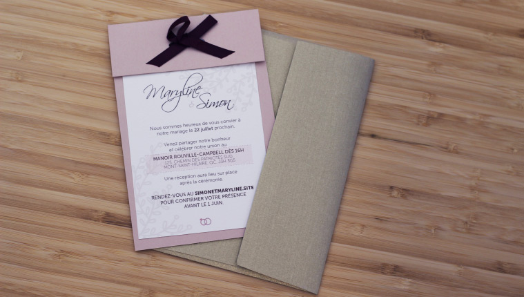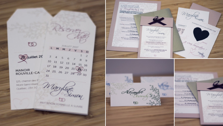 Création d’un carton “save the date”, d’un carton d’invitation, des marques places, d’un carton réponse, d’un carton pour les bouquetières et bien plus…